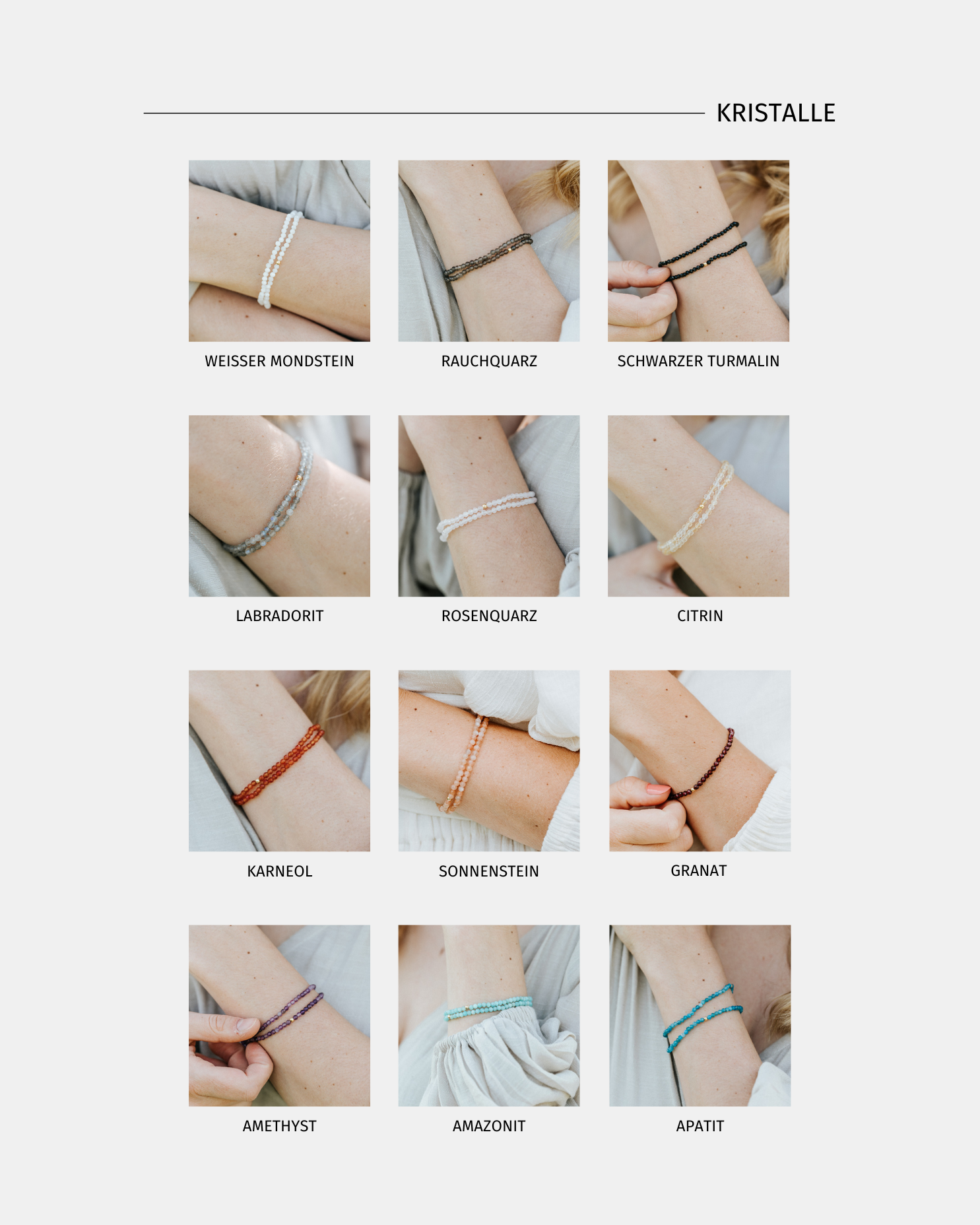 Kreiere deine ganz persönliche Mischung aus Kristallenergien – abgestimmt auf deinen Tag, deine Stimmung, deinen Rhythmus. Denn so wie du dich jeden Tag anders fühlst, darf auch dein Schmuck dich neu begleiten.