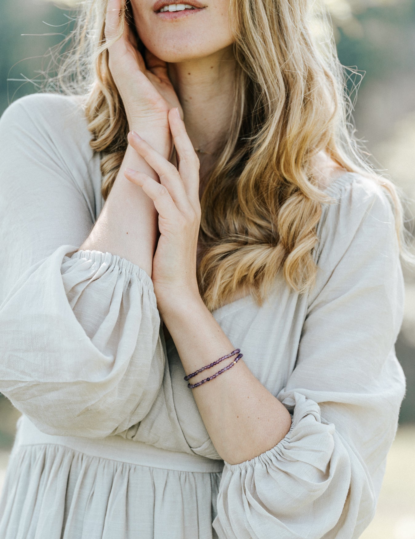 Am besten bewahrst du sie trocken, einzeln und lichtgeschützt auf – z. B. in einem kleinen Schmuckbeutel oder einer Box. Um dein Armband von Verschmutzungen zu reinigen, kannst du es unter lauwarmen Wasser abspülen und anschließend mit einem weichen Tuch trocknen. Zur energetischen Reinigung kannst du die Kristalle im Mond- oder Sonnenlicht aufladen oder mit Räucherwerk klären. Vermeide häufigen Kontakt mit Wasser, Cremes oder Parfum, um die Materialien zu schonen.