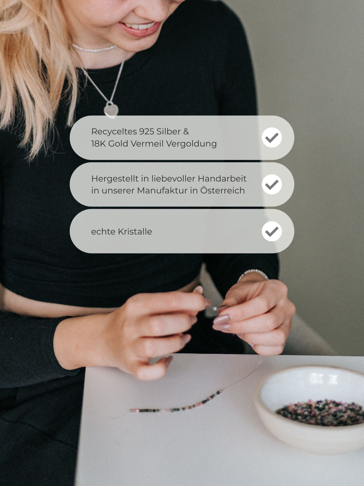 Jedes unserer handgemachten Schmuckstücke entsteht in liebevoller Handarbeit – gefertigt in unserer Manufaktur in Österreich.