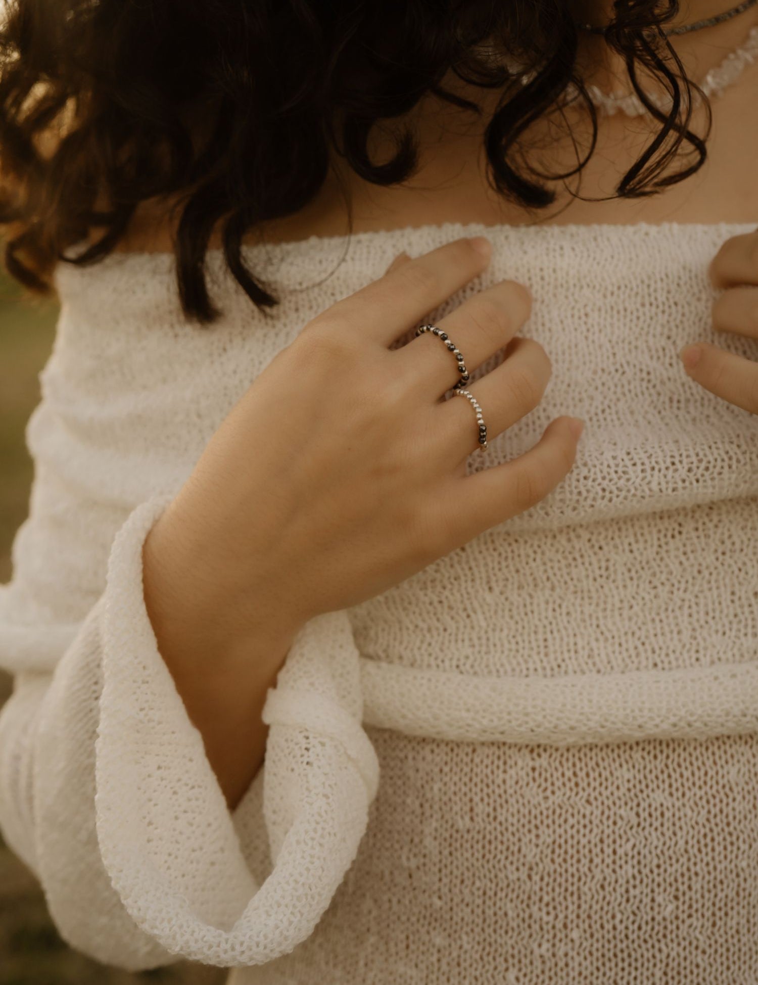 Die Stücke dieser Kollektion vereinen zwei Kräfte, die sich nicht ausschließen - sondern sich perfekt ergänzen: Leichtigkeit und Erdung. Bewegung und Ruhe. Wildheit und Klarheit.