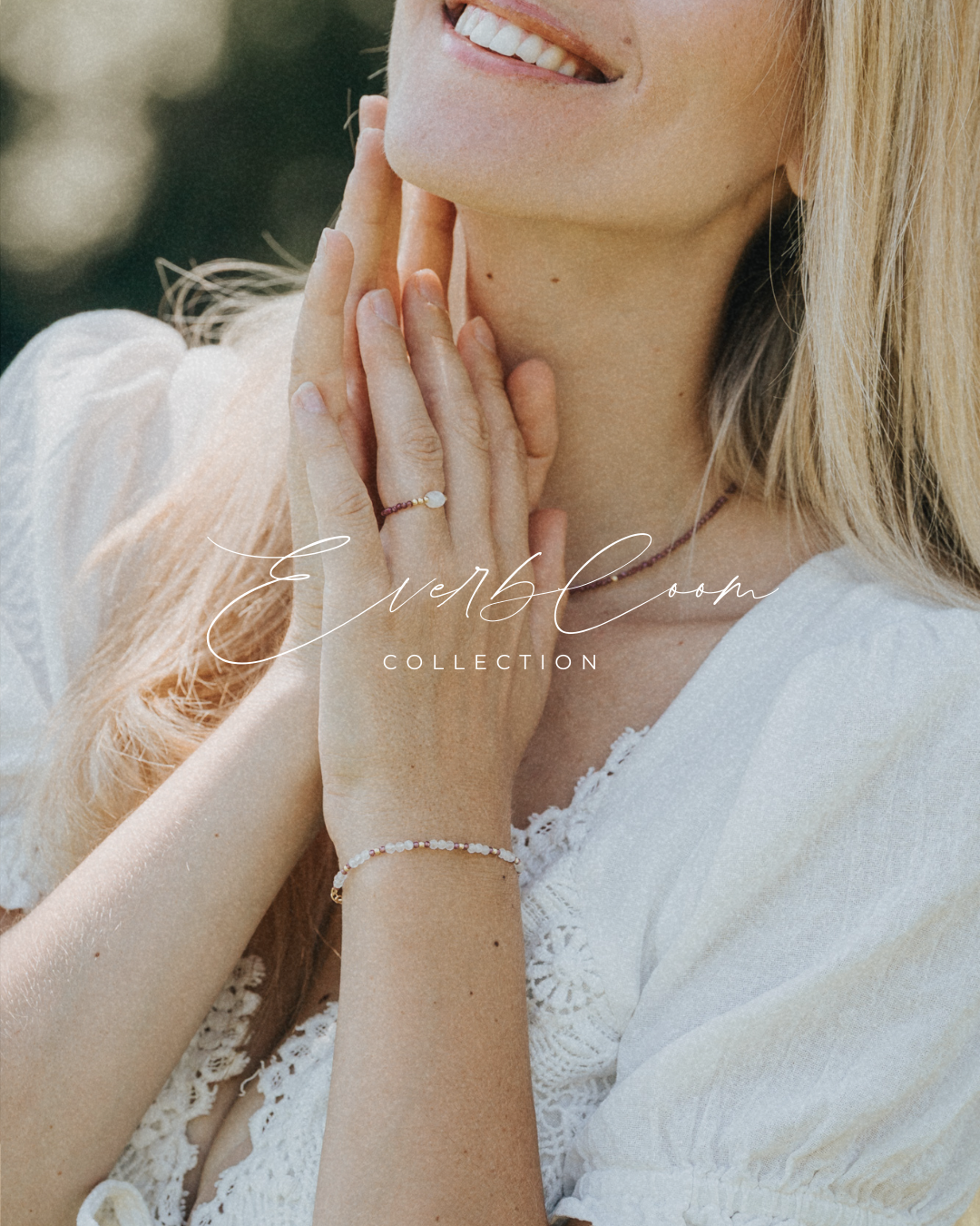 Everbloom ist eine Ode an dein inneres Erblühen. An die Kraft, die sanft in dir wächst und mit jedem Atemzug größer wird. Diese Kollektion verbindet zarte Kristallenergie mit femininen Farben und Designs. Jedes Schmuckstück ist wie ein kleiner Begleiter, der dich daran erinnert, wer du wirklich bist: ein Wunder in ständiger Entfaltung.
