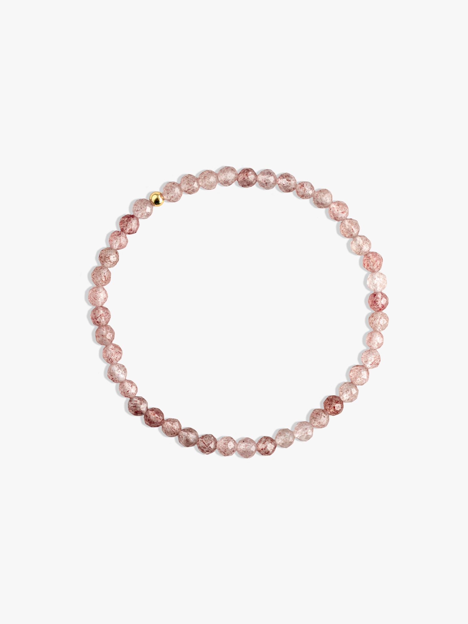 Material: Erdbeerquarz Perlen, 4 mm, facettiert, mit Silber- bzw. Goldperle (925 Silber, 18K vergoldet, 3 Micron)