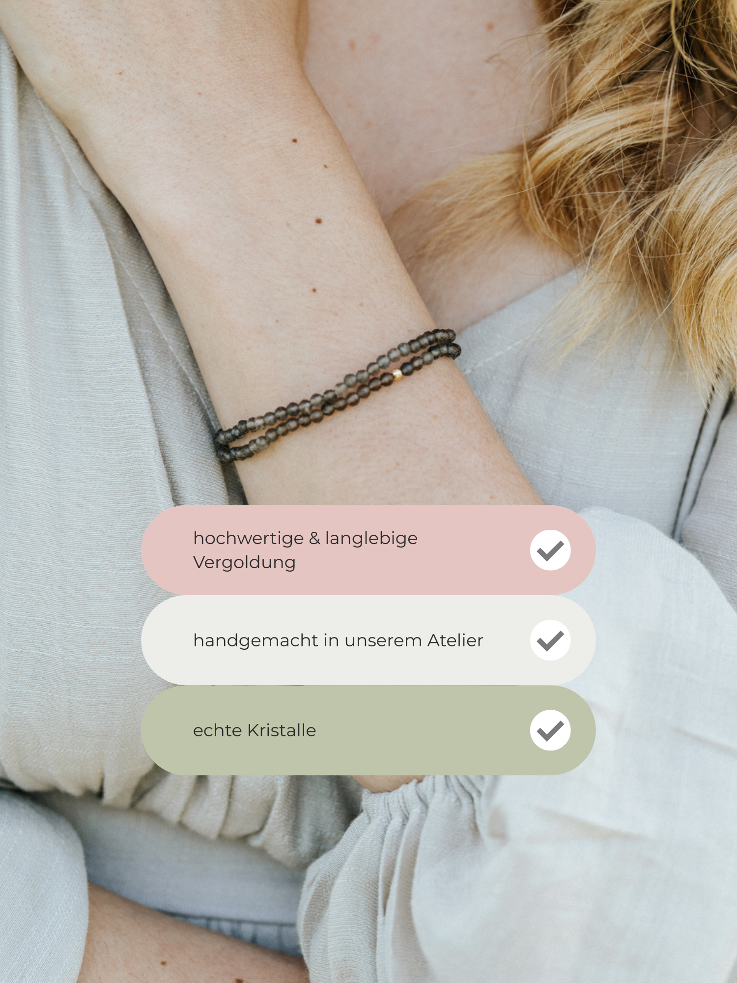 Unsere Armbänder tragen keine leeren Versprechen. Sie erinnern dich einfach daran, wie viel Kraft bereits in dir steckt – auch an den Tagen, an denen du es selbst manchmal vergisst.