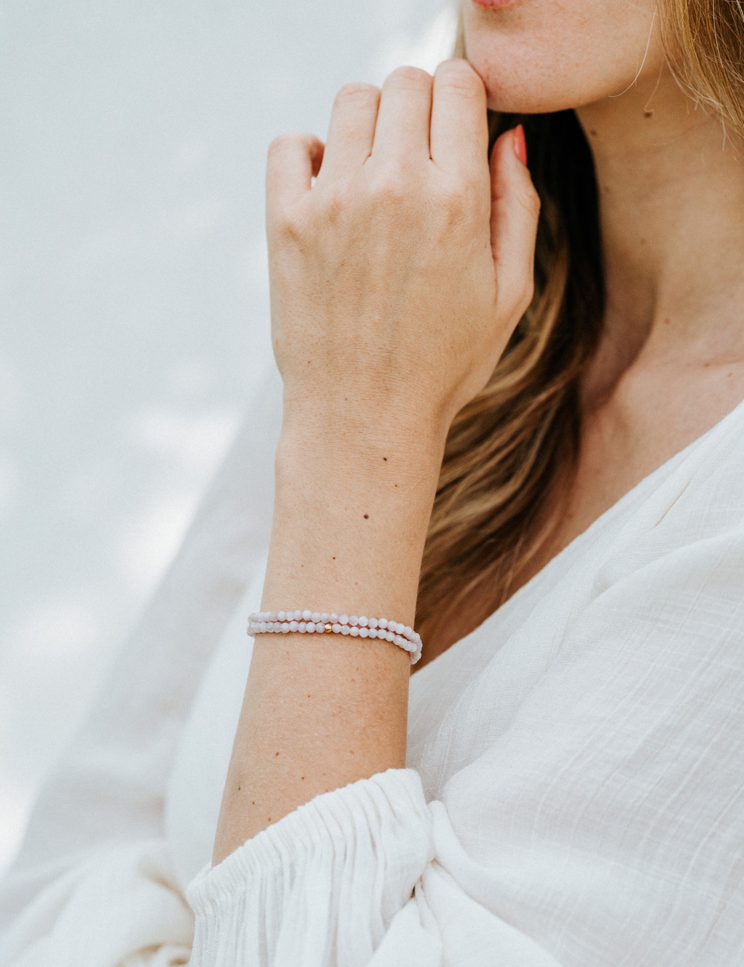 Dein Armband erinnert dich leise daran, innezuhalten. Zu spüren. Durchzuatmen. Es ist mehr als ein Accessoire: es ist ein kleines Stück Erdung für zwischendurch. Ein Alltagsbegleiter, der dich hält - auch dann, wenn alles um dich herum laut ist.