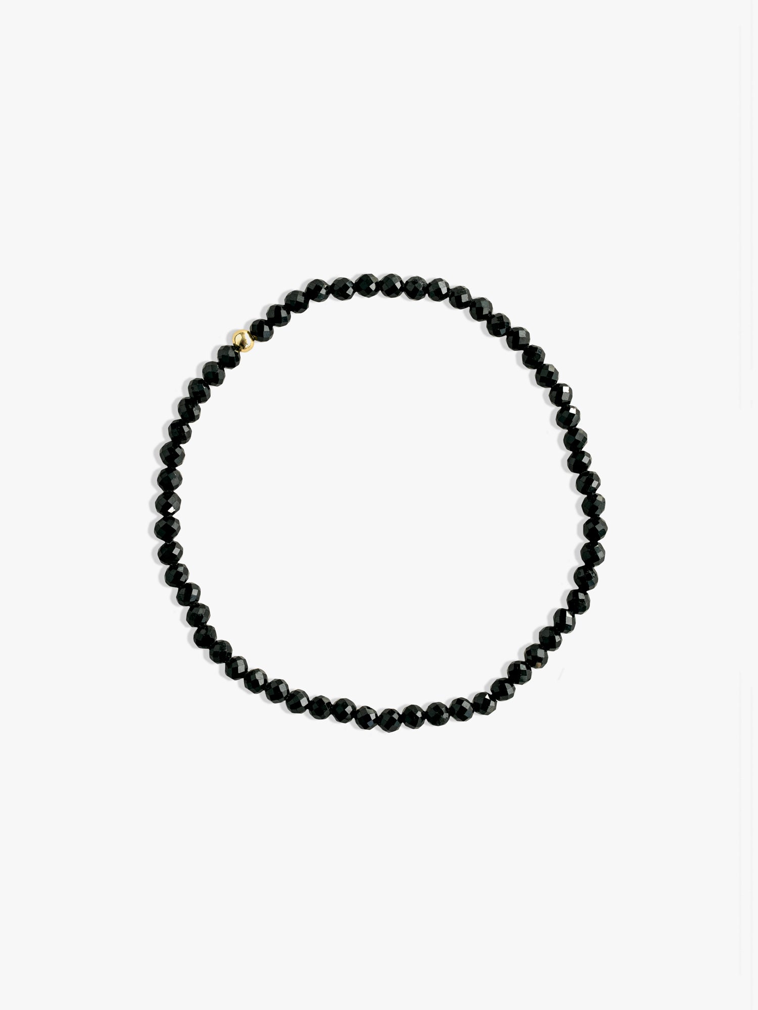 Material: Schwarzer Turmalin Perlen, 3 mm, facettiert, mit Silber- bzw. Goldperle (925 Silber, 18K vergoldet, 3 Micron)