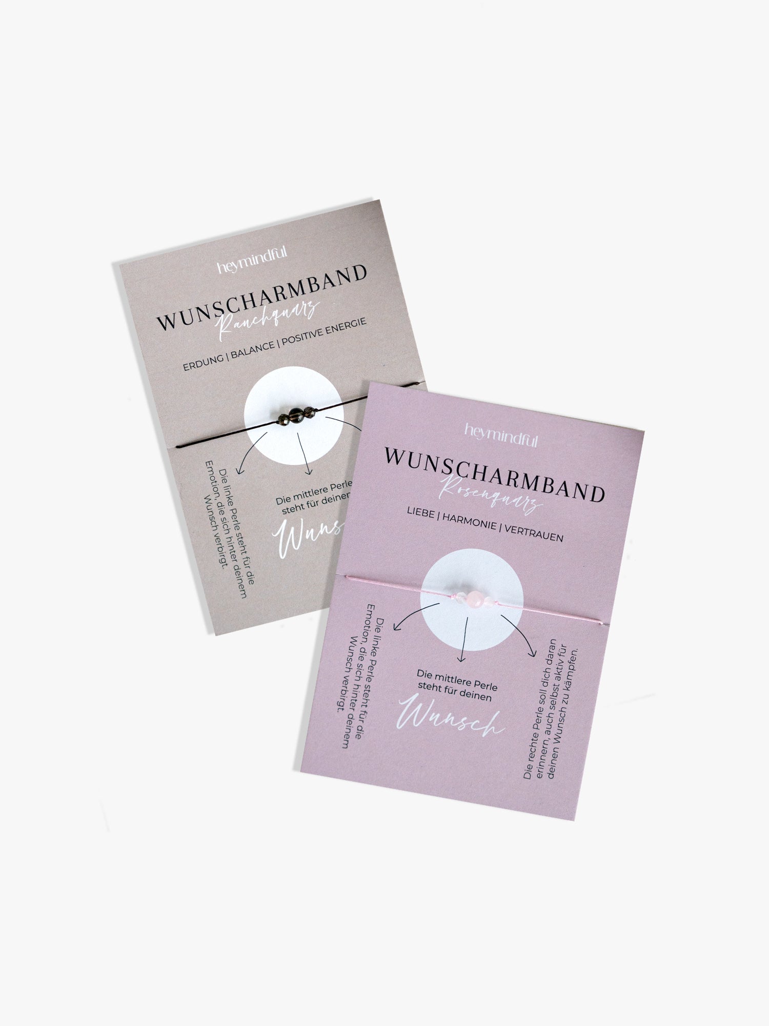 Die Wunscharmbänder von heymindful sind mehr als ein Schmuckstück - sie sind eine tägliche Erinnerung an deine Träume und Absichten. Handgefertigt in Österreich bestehen sie aus einem feinen Garn und drei Kristallperlen, die deine Manifestation unterstützen:
