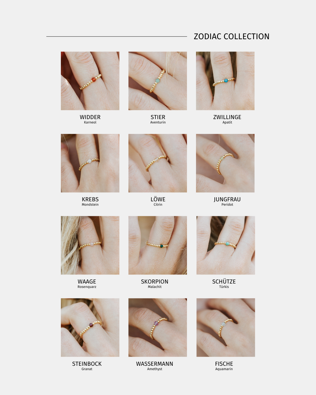 Ob als Symbol für dein Sternzeichen oder einfach, weil dich die Energie eines bestimmten Kristalls ruft – wähle intuitiv, was dich anspricht. Denn nicht nur dein Sonnenzeichen prägt dich, sondern die gesamte Konstellation deines Geburtscharts.